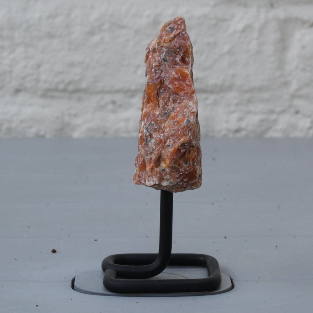 Whether you place it in a meditation corner or simply use it as a focal point in your living room, the orchid calcite on a modern metal stand is sure to add a touch of elegance and create a space that promotes relaxation and well-being.